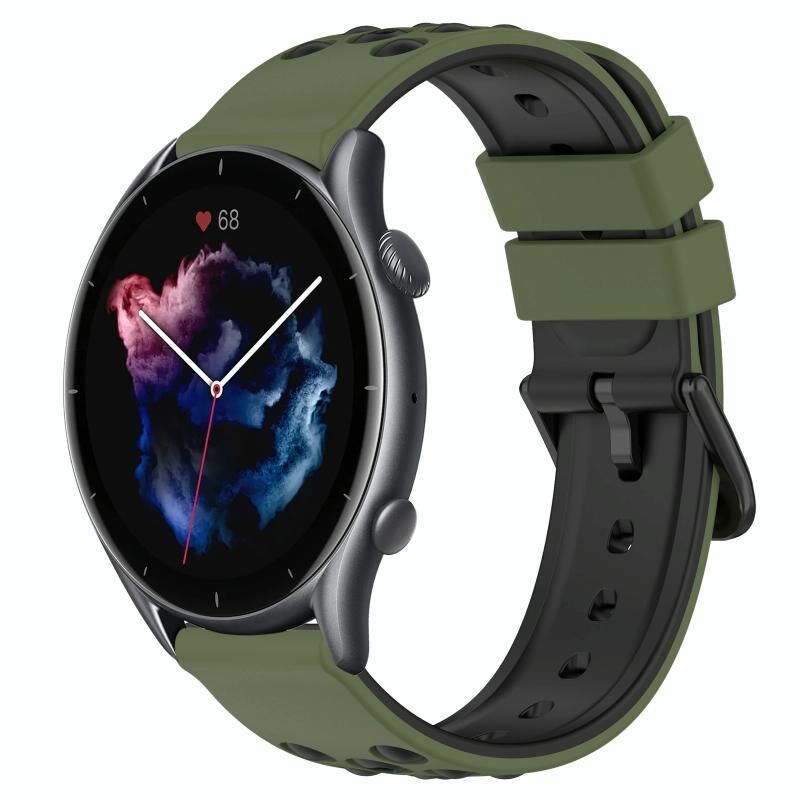 Για Amazfit GTR 3 Pro 22 χιλιοστά δύο χρωμάτων πορώδη ζώνη σιλικόνης ρολόι (πράσινο στρατού + μαύρο)
