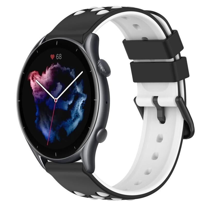 Για Amazfit GTR 3 Pro 22 χιλιοστά δύο χρωμάτων πορώδες λουράκι σιλικόνης ρολόι (μαύρο + λευκό)