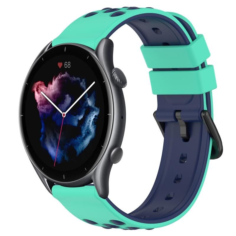 Για Amazfit GTR 3 Pro 22 χιλιοστά δύο χρωμάτων πορώδη ζώνη σιλικόνης ρολόι (πράσινο + μπλε)