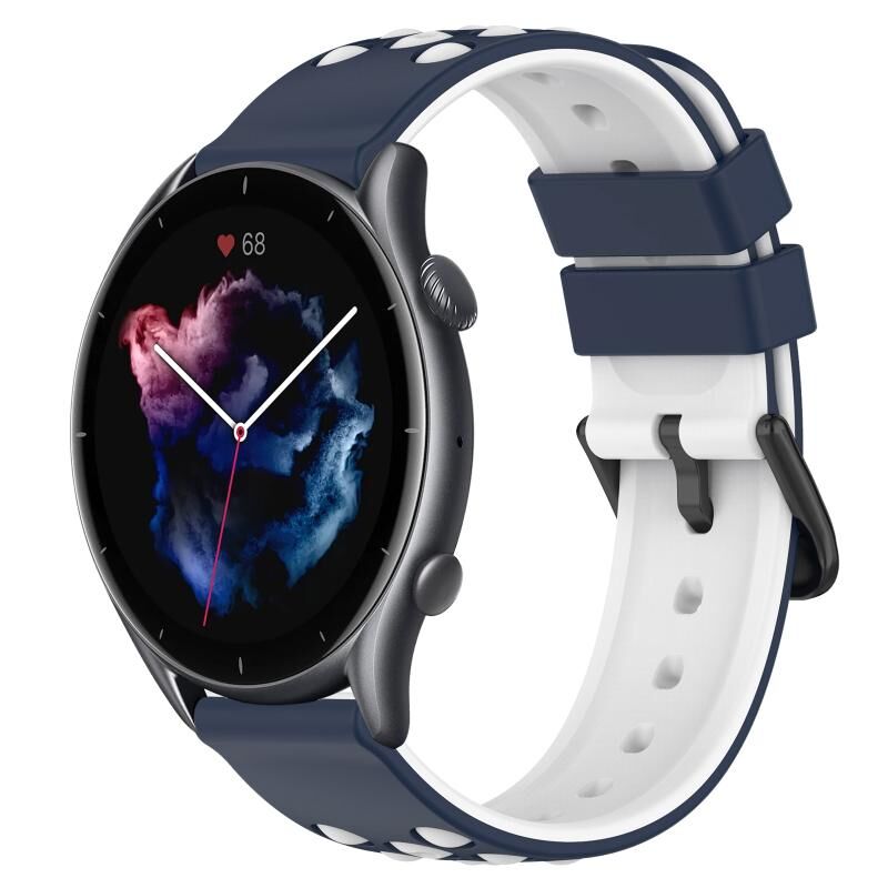 Για Amazfit GTR 3 Pro 22 χιλιοστά δύο χρωμάτων πορώδη σιλικόνη ρολόι μπάντα (Midnight Blue + Λευκό)