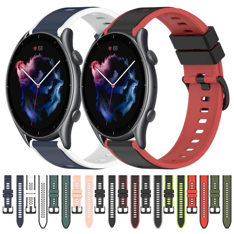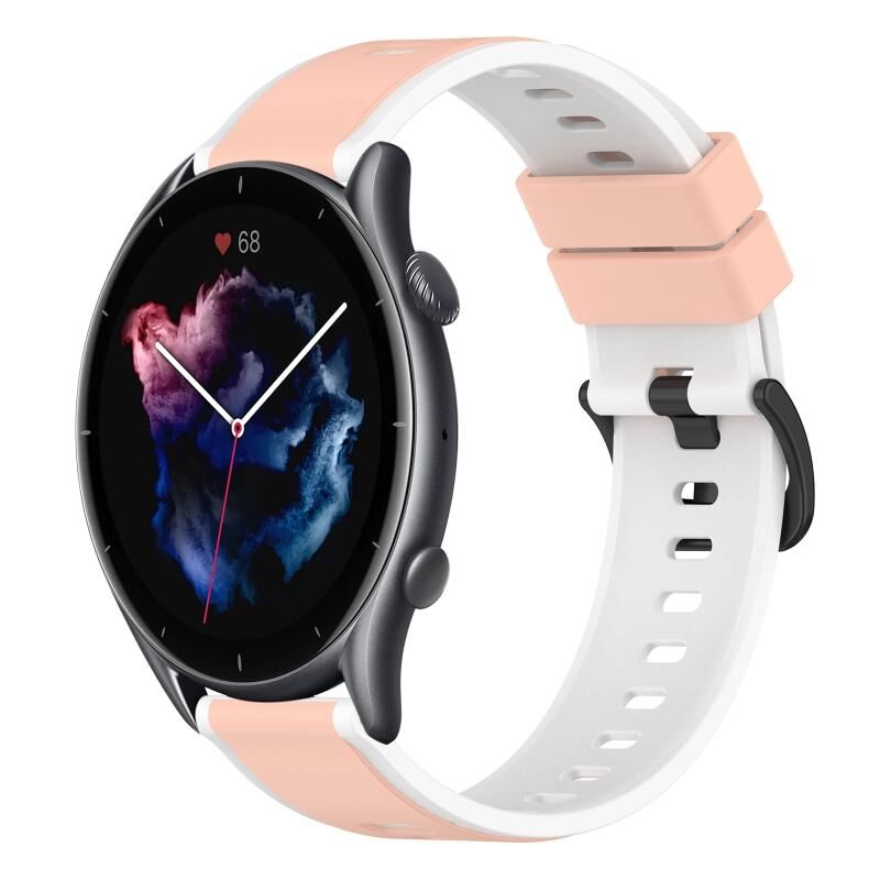 Για Amazfit GTR 3 Pro 22 χιλιοστά δύο χρωμάτων ζώνη σιλικόνης ρολόι (ροζ + λευκό)