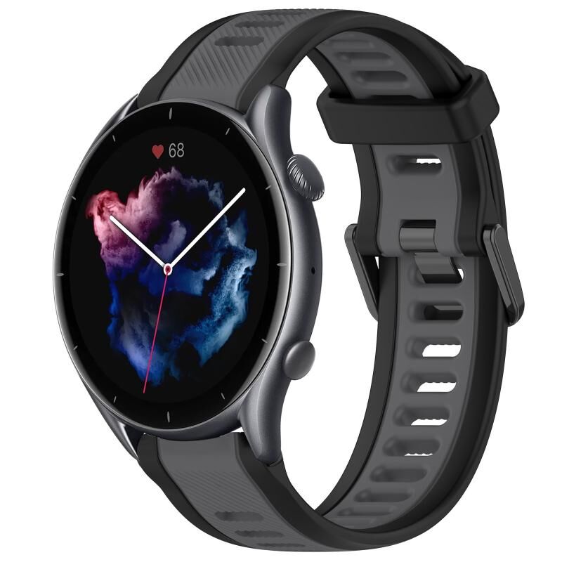 Για Amazfit GTR 3 Pro 22 χιλιοστά δύο χρωμάτων υφή σιλικόνης ρολόι μπάντα (γκρι + μαύρο)