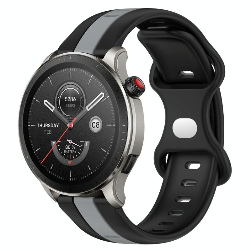 For Amazfit GTR 4 22mm Butterfly Buckle Two-Color Silicone Watch Band(Black+Grey)