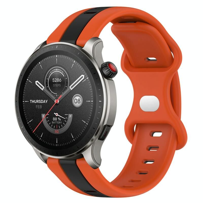 For Amazfit GTR 4 22mm Butterfly Buckle Two-Color Silicone Watch Band(Orange+Black)