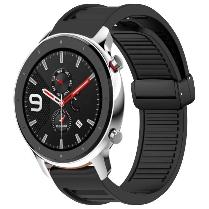 For Amazfit GTR 4 22mm Fold Magnetic Buckle Silicone Watch Band(Black)