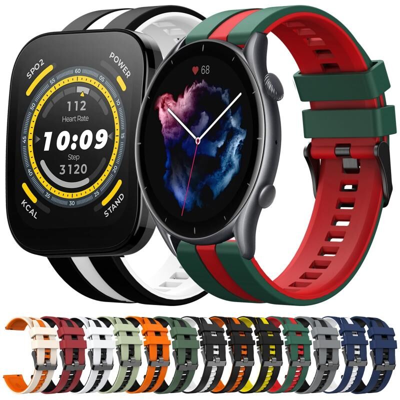 Για Amazfit GTR 4 22 χιλιοστά δύο χρωμάτων αθλητική ζώνη σιλικόνης ρολόι (μπλε + λευκό)