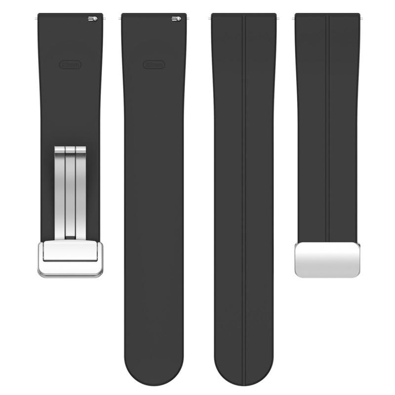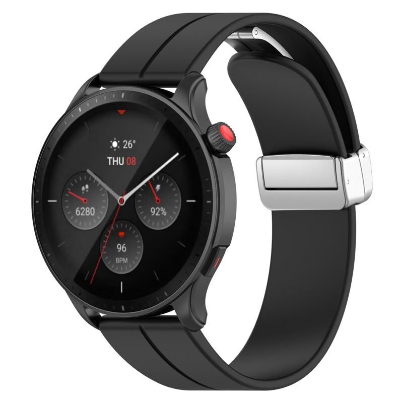 Για Amazfit GTR 4 Μαγνητικό πτυσσόμενο κούμπωμα ασημένια πόρπη ζώνη ρολογιού σιλικόνης (μαύρο)