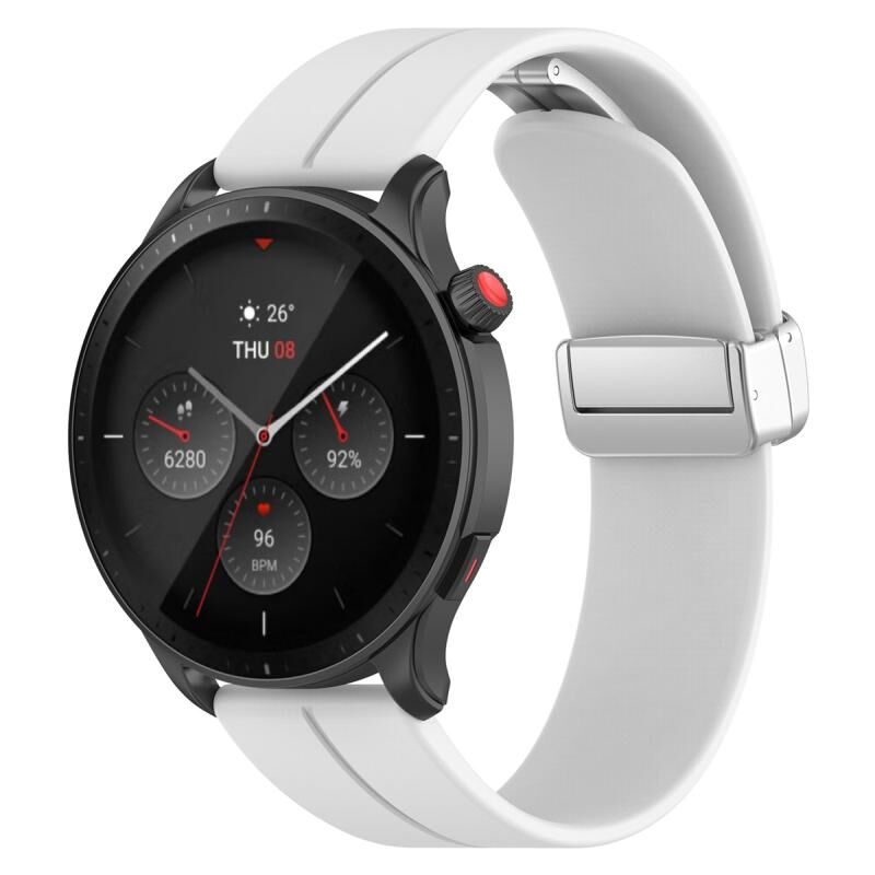 Για Amazfit GTR 4 Μαγνητικό πτυσσόμενο κούμπωμα ασημένια πόρπη ζώνη ρολογιού σιλικόνης (λευκό)