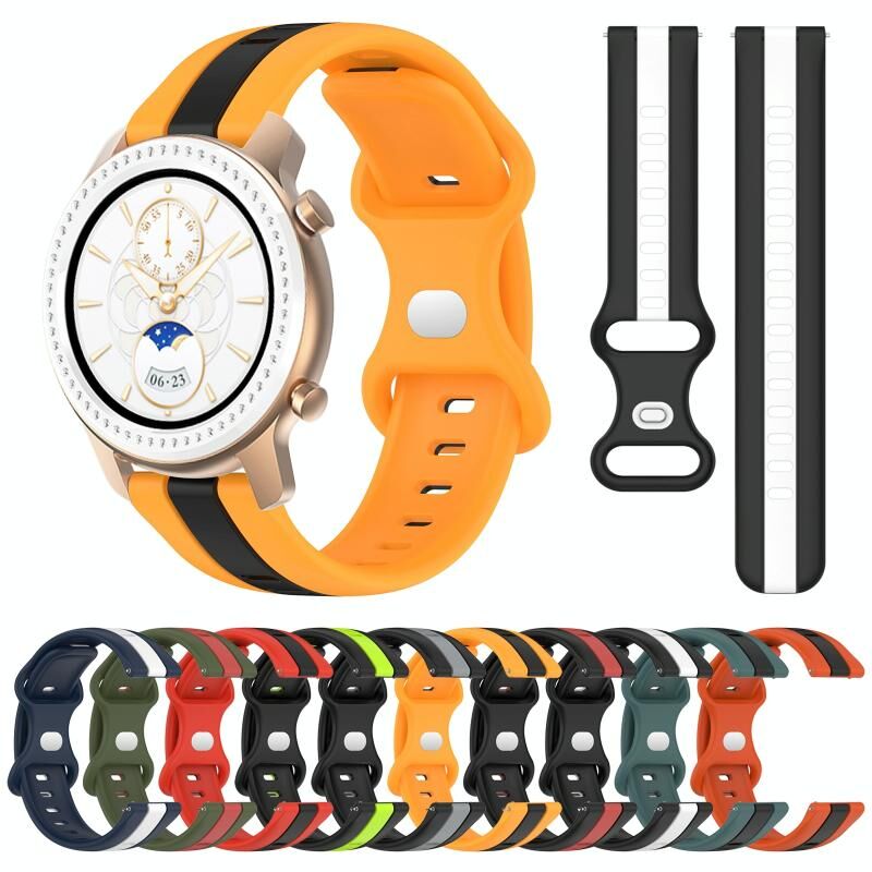 For Amazfit GTR 42mm 20mm Butterfly Buckle Two-Color Silicone Watch Band(Black+Green)