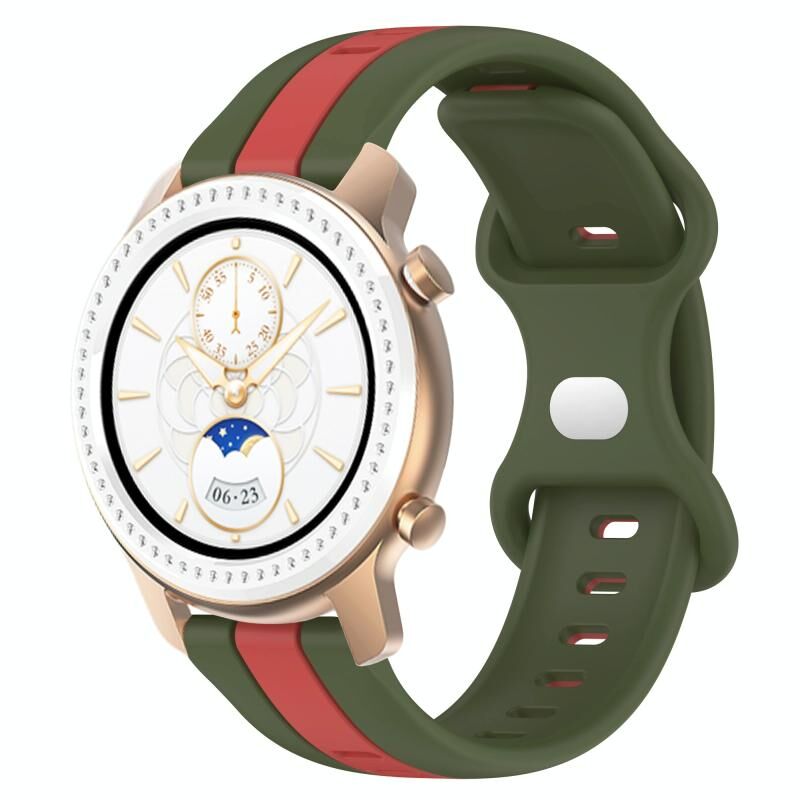 For Amazfit GTR 42mm 20mm Butterfly Buckle Two-Color Silicone Watch Band(Red+Army Green)