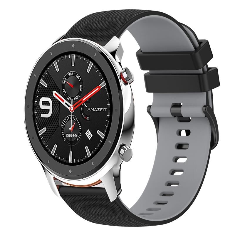 For Amazfit GTR 42mm 20mm Checkered Two-Color Silicone Watch Band(Black+Grey)