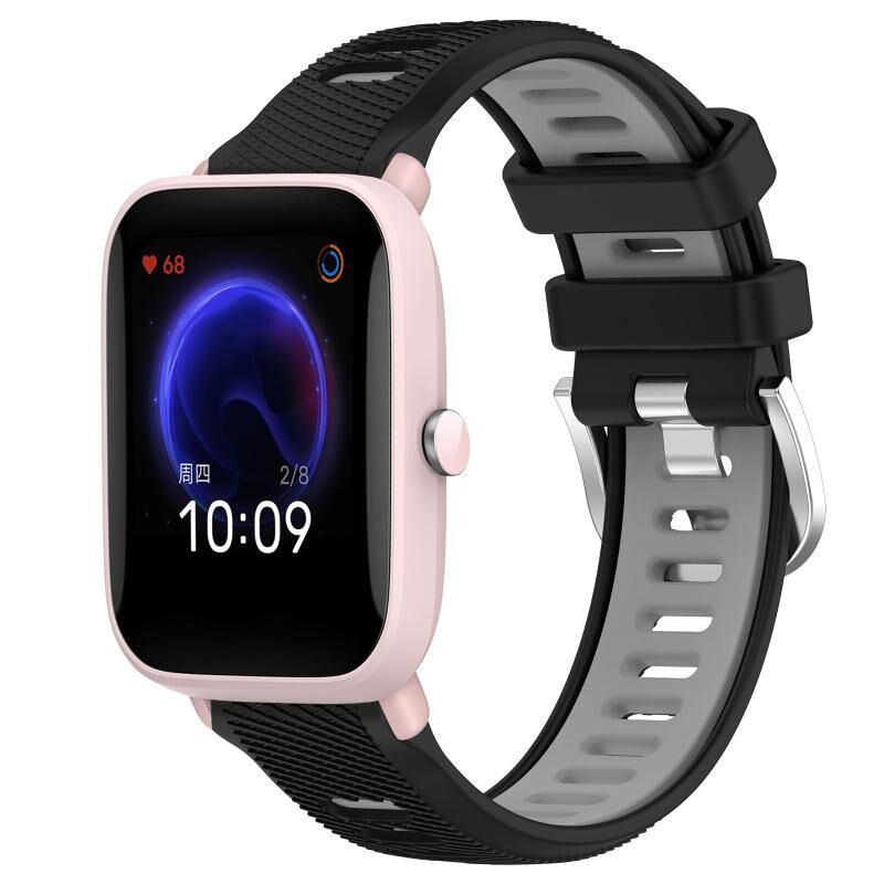 Για Amazfit GTR 42MM λουρί ρολογιού σιλικόνης με ατσάλινη πόκα διχρωμίας με ανάγλυφη υφή (Λευκό+Μπλε) 20mm