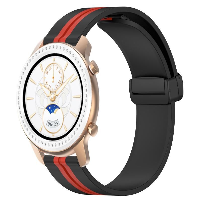 Για Amazfit GTR 42mm 20mm Πτυσσόμενο μαγνητικό κούμπωμα ζώνη ρολογιού σιλικόνης (μαύρο + κόκκινο)