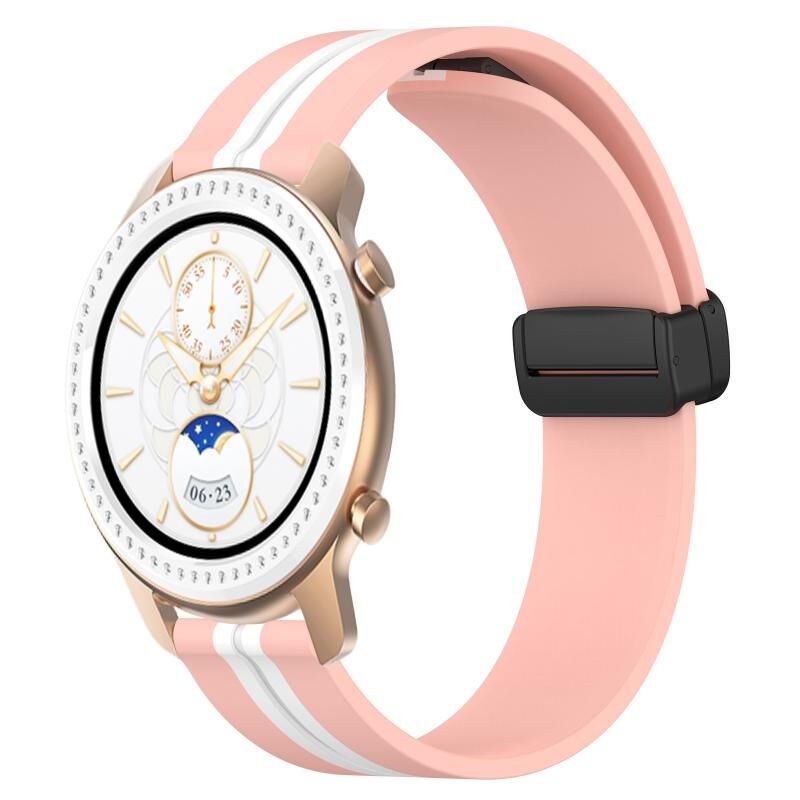 Για Amazfit GTR 42mm 20mm Πτυσσόμενο μαγνητικό κούμπωμα ζώνη ρολογιού σιλικόνης (ροζ + λευκό)