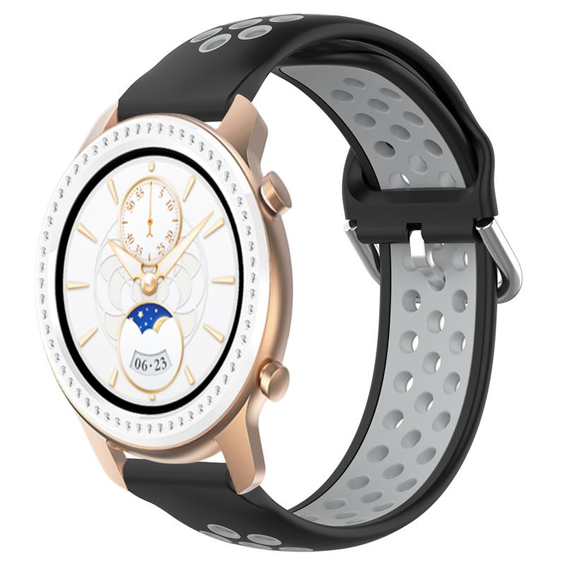 For Amazfit GTR 42MM 20mm Perforated Breathable Sports Silicone Watch Band(Black+ Grey)