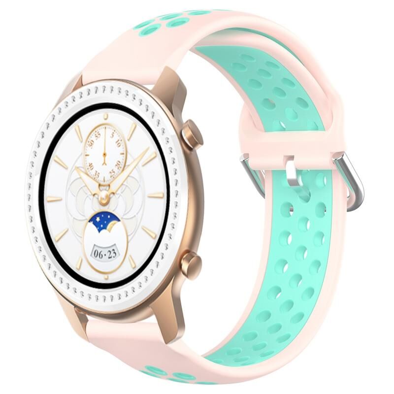 For Amazfit GTR 42MM 20mm Perforated Breathable Sports Silicone Watch Band(Pink+ Water Duck)