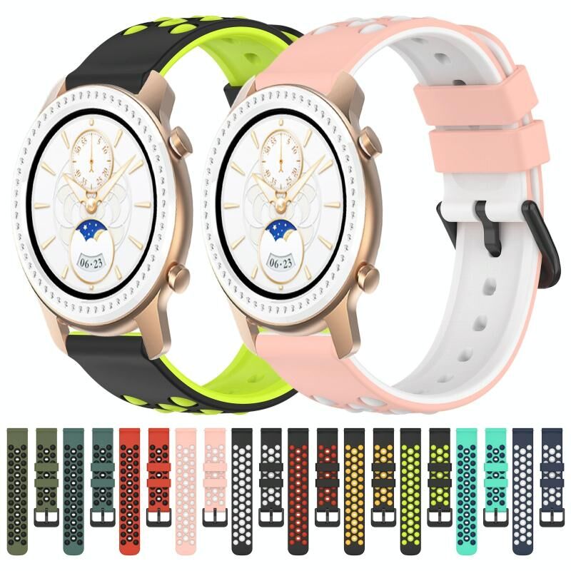 Για Amazfit GTR 42mm 20mm Δύο-χρώμα πορώδη σιλικόνη ρολόι μπάντα ρολόι (Midnight Blue + Λευκό)