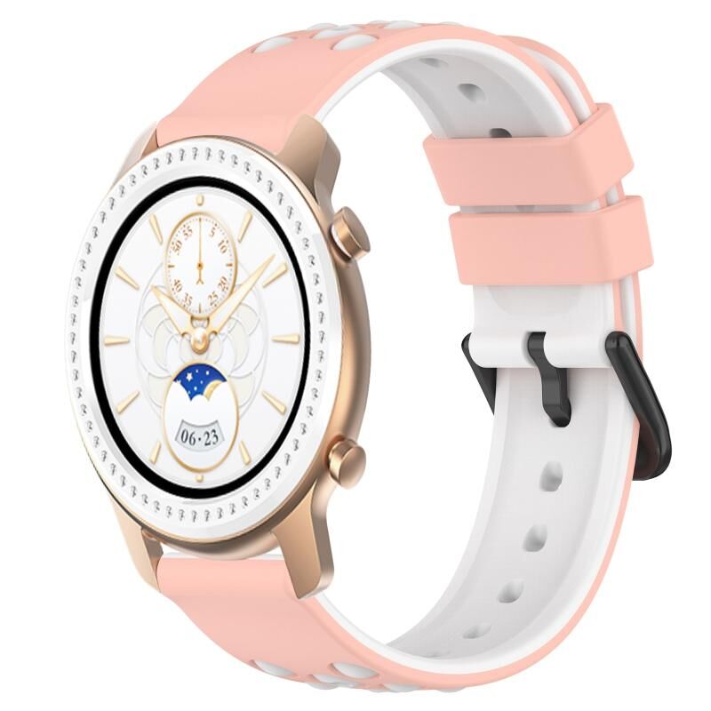 Για Amazfit GTR 42mm 20mm Δύο-χρώμα πορώδη σιλικόνη ρολόι μπάντα (ροζ + λευκό)
