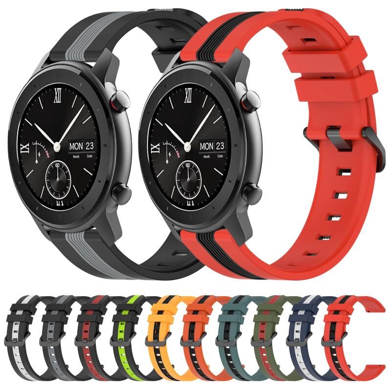 Για Amazfit GTR 42MM 20mm Κάθετος Δίχρωμος Λουράκι Σιλικόνης Ρολογιού (Πορτοκαλί+Μαύρο)