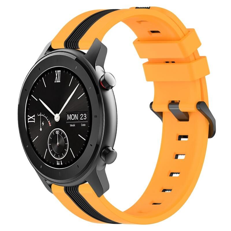 Για Amazfit GTR 42MM 20mm Κάθετος Δίχρωμος Λουράκι Σιλικόνης Ρολογιού (Πορτοκαλί+Μαύρο)