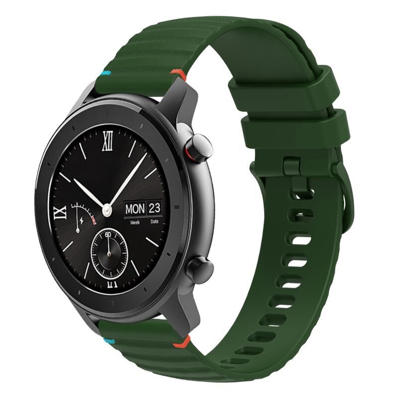 For Amazfit GTR 42mm Wavy Dotted Stitched 20mm Silicone Watch Band(Army Green)