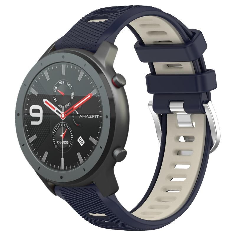 Για Amazfit GTR 47mm λουρί ρολογιού σιλικόνης με ατσάλινη πόκα διχρωμίας και ανάγλυφη υφή 22mm (Λευκό+Μπλε)