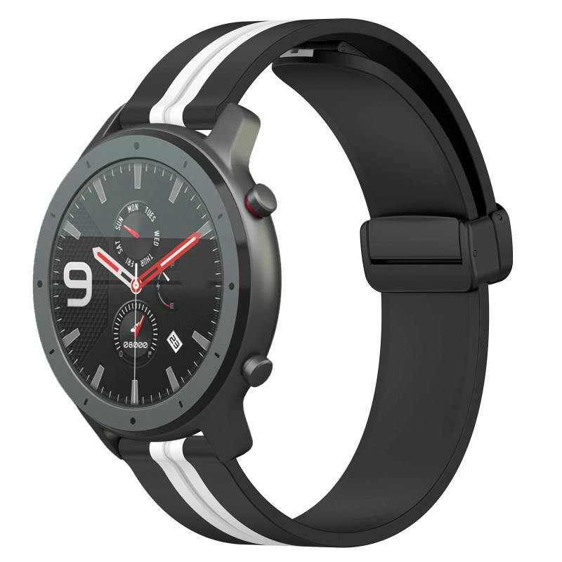 Για Amazfit GTR 47mm 22mm Πτυσσόμενο μαγνητικό κούμπωμα ζώνη ρολογιού σιλικόνης (μαύρο + λευκό)