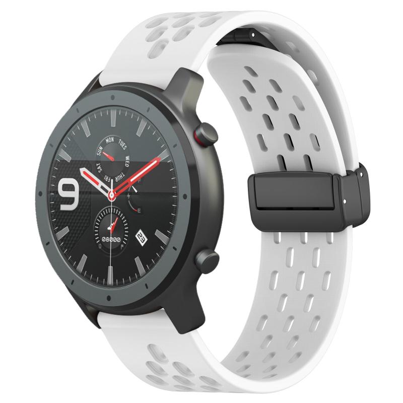 For Amazfit GTR 47mm 22mm Folding Magnetic Clasp Silicone Watch Band(White)