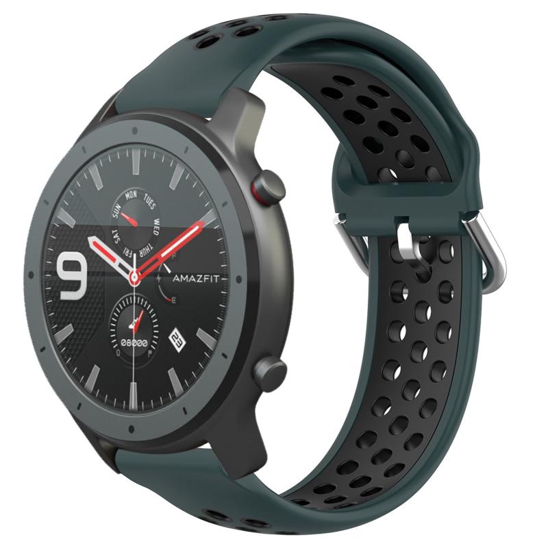 For Amazfit GTR 47mm 22mm Perforated Breathable Sports Silicone Watch Band(Olive Green+Black)