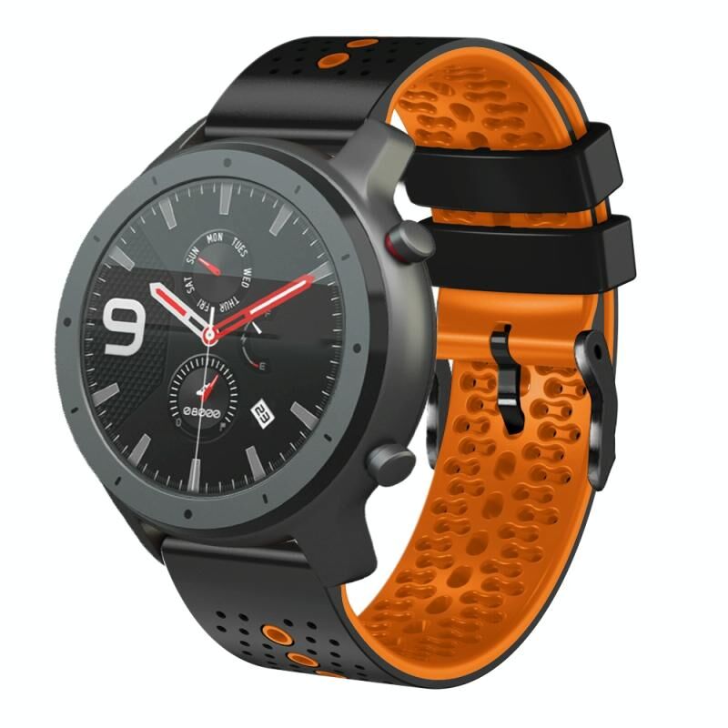 Για Amazfit GTR 47mm 22mm διάτρητο συγκρότημα ρολογιού σιλικόνης δύο χρωμάτων (μαύρο + πορτοκαλί)