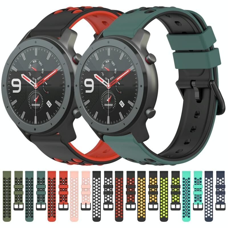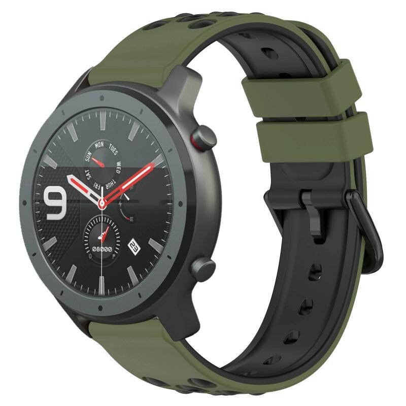 Για Amazfit GTR 47mm 22mm Δύο χρωμάτων πορώδες λουράκι σιλικόνης ρολόι (πράσινο στρατού + μαύρο)