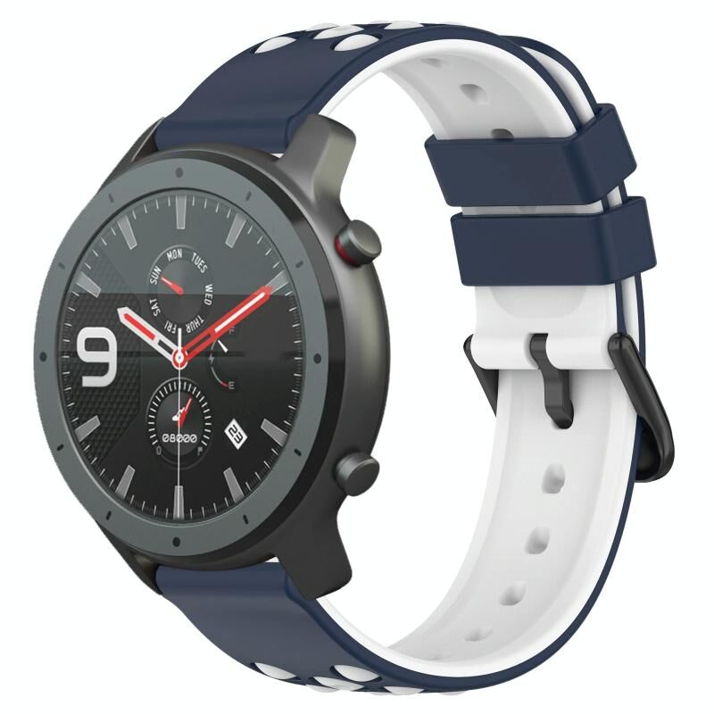 Για Amazfit GTR 47mm 22mm Δύο-χρώμα πορώδη σιλικόνη ρολόι μπάντα ρολόι (Midnight Blue + Λευκό)