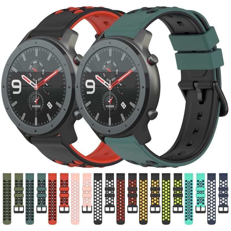 Για Amazfit GTR 47mm 22mm Δύο-χρώμα πορώδες λουράκι σιλικόνης ρολόι (Olive Green + Μαύρο)
