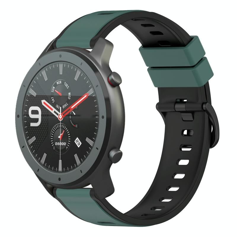 Για Amazfit GTR 47mm 22mm Δύο χρωμάτων σιλικόνης ρολόι μπάντα ρολογιού (πράσινο + μαύρο)