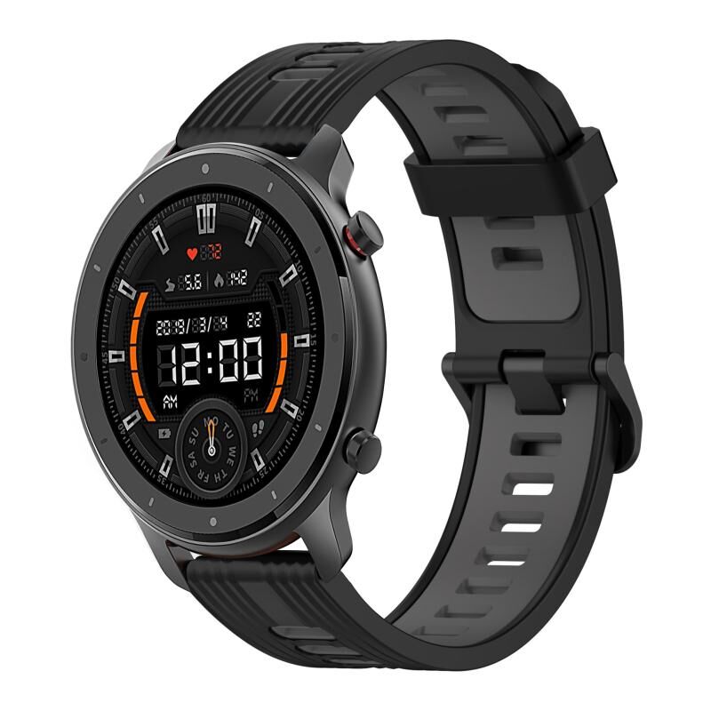 Για Amazfit GTR 47mm λουρί ρολογιού σιλικόνης κάθετης διάταξης διχρωμίας 22mm (Λευκό+Μαύρο)