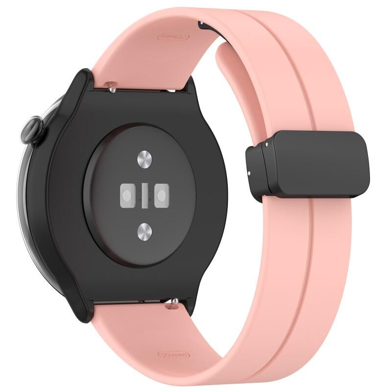 Για Amazfit GTR Mini Μαγνητικό πτυσσόμενο κούμπωμα Μαύρη πόρπη ζώνη ρολογιού σιλικόνης (ανοιχτό ροζ)