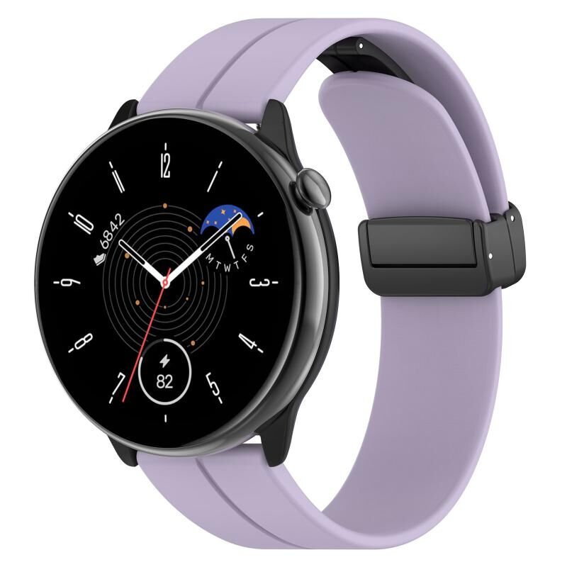 Για Amazfit GTR Mini Μαγνητικό πτυσσόμενο κούμπωμα Μαύρη πόρπη ζώνη ρολογιού σιλικόνης (ανοιχτό μοβ)