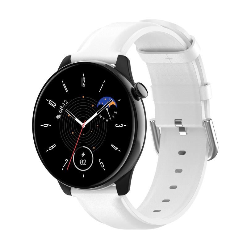 For Amazfit GTR Mini Round Tail Genuine Leather Watch Band(White)