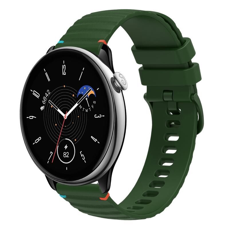 For Amazfit GTR Mini Wavy Dotted Stitched 20mm Silicone Watch Band(Army Green)