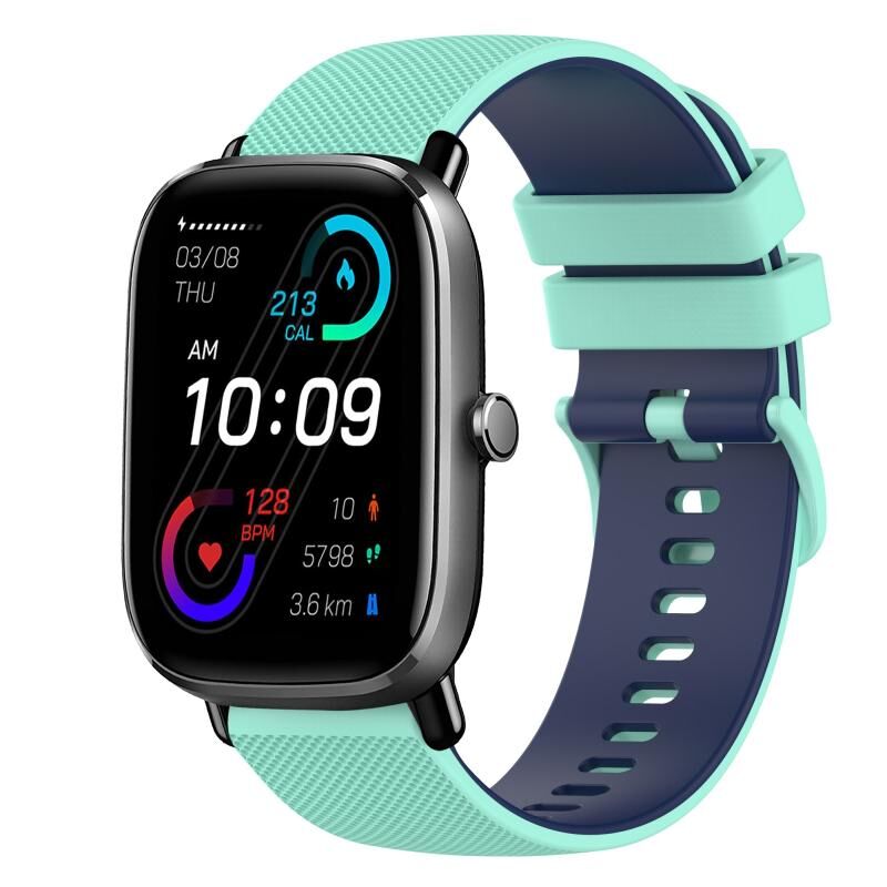 For Amazfit GTS 2 20mm Checkered Two-Color Silicone Watch Band(Teal+Blue)