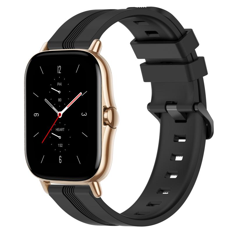 For Amazfit GTS 2 20mm Concave Striped Slicone Watch Band(Black)