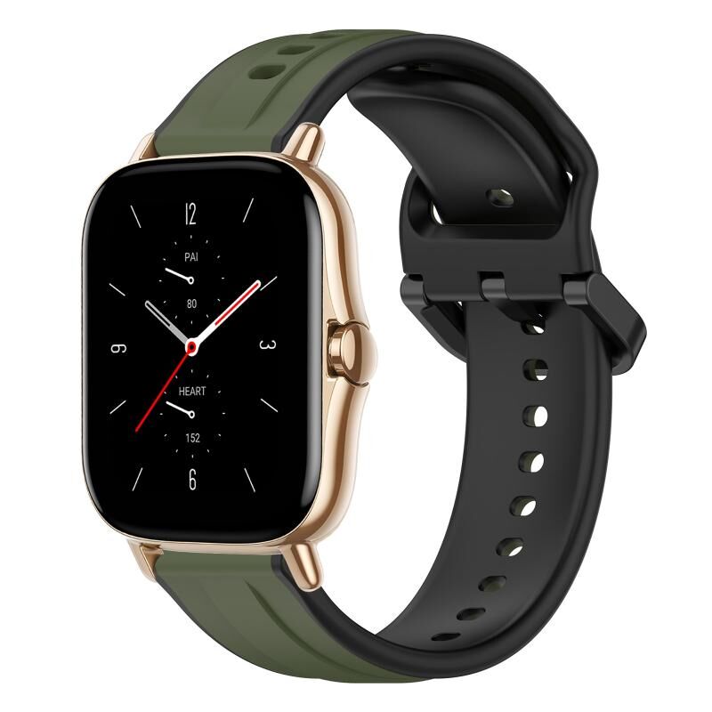 Για Amazfit GTS 2 20 χιλιοστά κυρτό βρόχο δύο χρωμάτων σιλικόνης ρολόι μπάντα (σκούρο πράσινο + μαύρο)