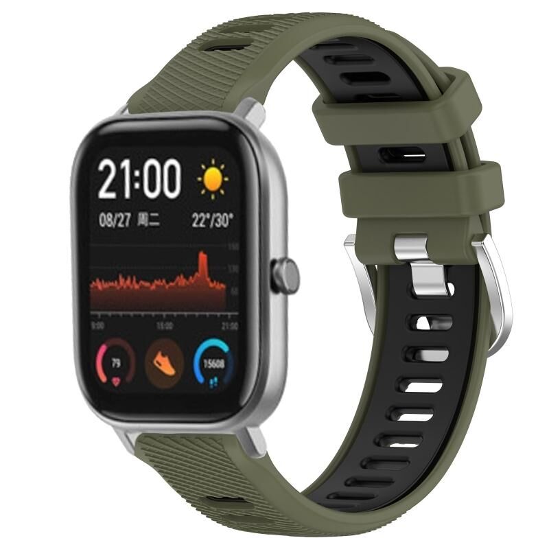 For Amazfit GTS 2 20mm Cross Texture Two Color Silicone Steel Buckle Watch Band(Army Green+Black)