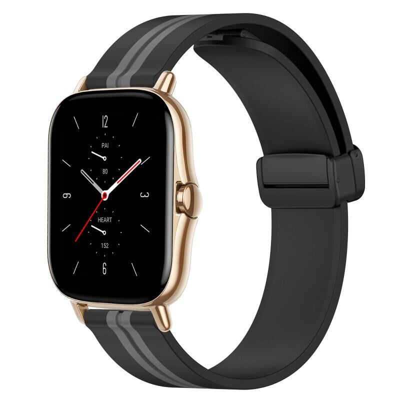 Για Amazfit GTS 2 20mm Πτυσσόμενο μαγνητικό κούμπωμα ζώνη ρολογιού σιλικόνης (μαύρο + γκρι)