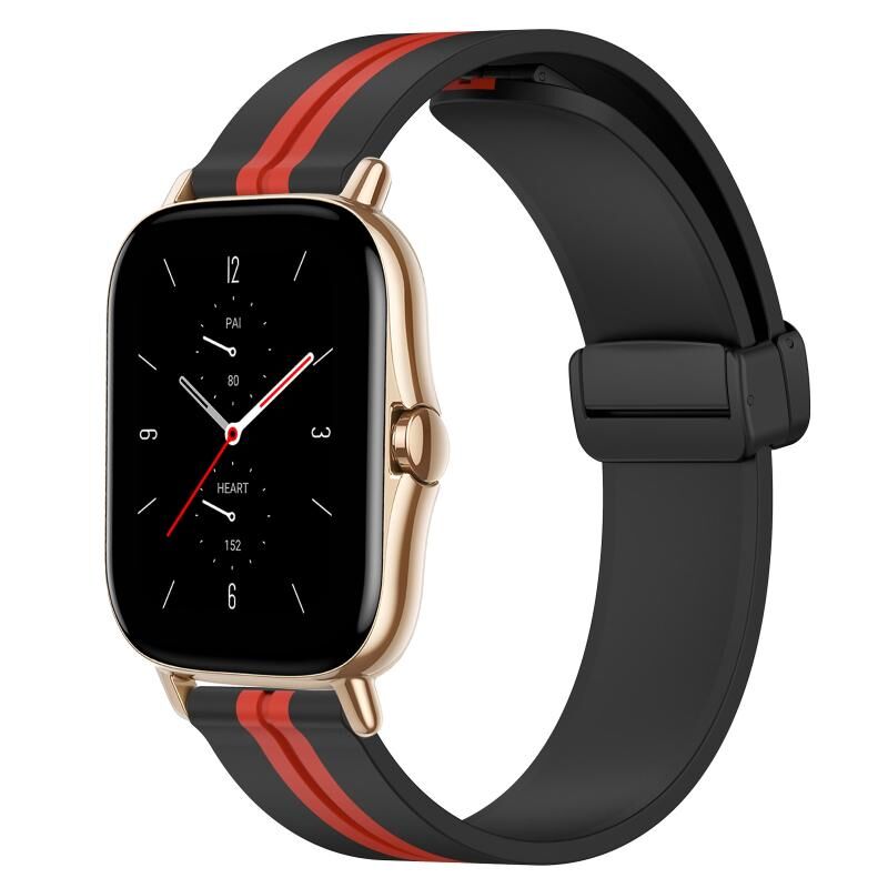 Για Amazfit GTS 2 20mm Πτυσσόμενο μαγνητικό κούμπωμα ζώνη ρολογιού σιλικόνης (μαύρο + κόκκινο)