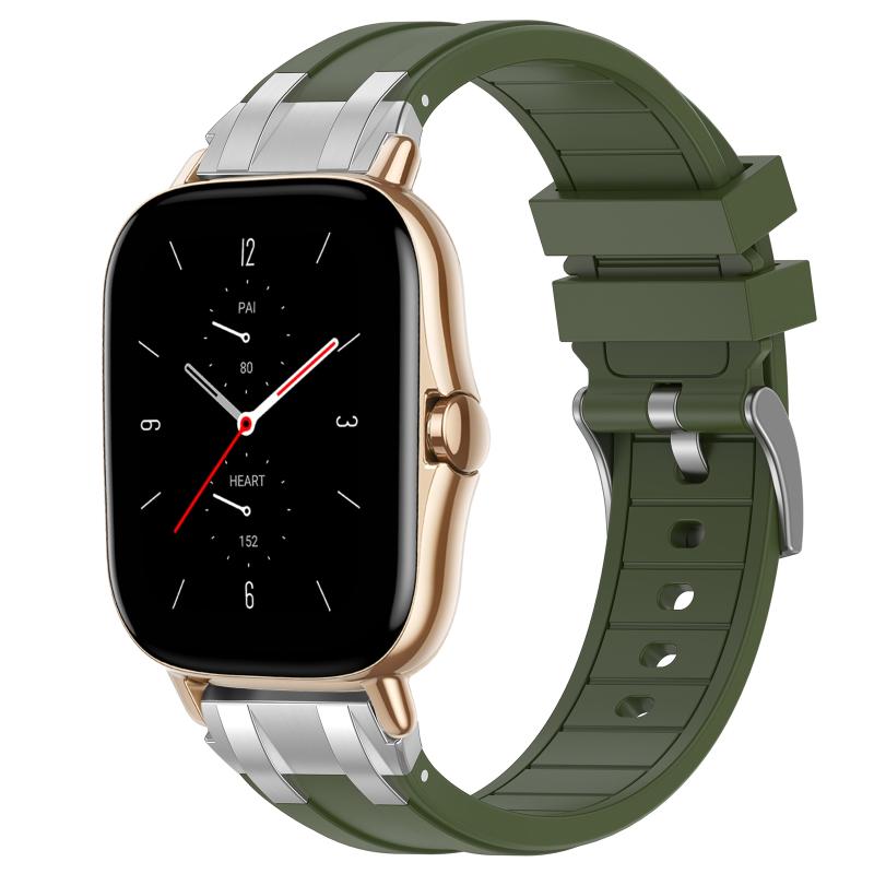 For Amazfit GTS 2 20mm Quick Release Silver Buckle Royal Silicone Watch Band(Olive Green)