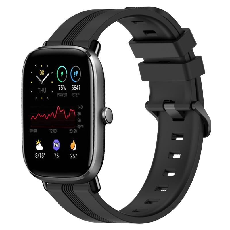 For Amazfit GTS 2 Mini 20mm Concave Striped Slicone Watch Band(Black)