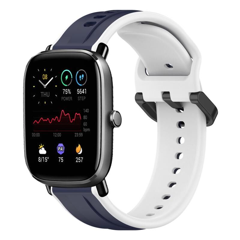 Για Amazfit GTS 2 Mini 20 χιλιοστά κυρτό βρόχο δύο χρωμάτων σιλικόνης ρολόι μπάντα (Midnight Blue + Λευκό)