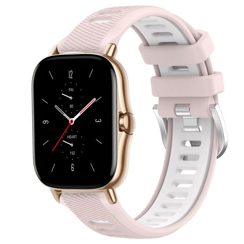 Για Amazfit GTS 2 Mini λουρί ρολογιού σιλικόνης με ατσάλινη πόρπη, διχρωμίας με ανάγλυφη υφή 20mm (Ροζ+Λευκό)
