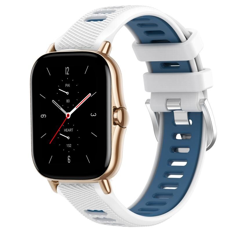 Για Amazfit GTS 2 Mini λουρί ρολογιού σιλικόνης με ατσάλινη πόρπη, 20mm, διχρωμίας με ανάγλυφη υφή (Λευκό+Μπλε)